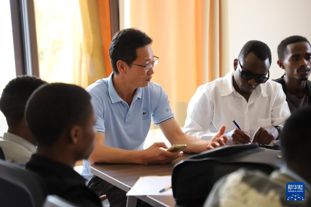 1月5日,在卢旺达东方省一家中资企业,金华职业技术大学穆桑泽国际学院院长钱向明为卢旺达毕业生进行就业辅导。 新华社记者 鞠银河 摄